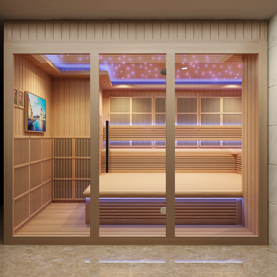 汗蒸房是在桑拿房的基礎上,不斷研究和改進后,利用先進的納米技術,配置電氣石和遠紅外,以此增加桑拿房的功效和功能。